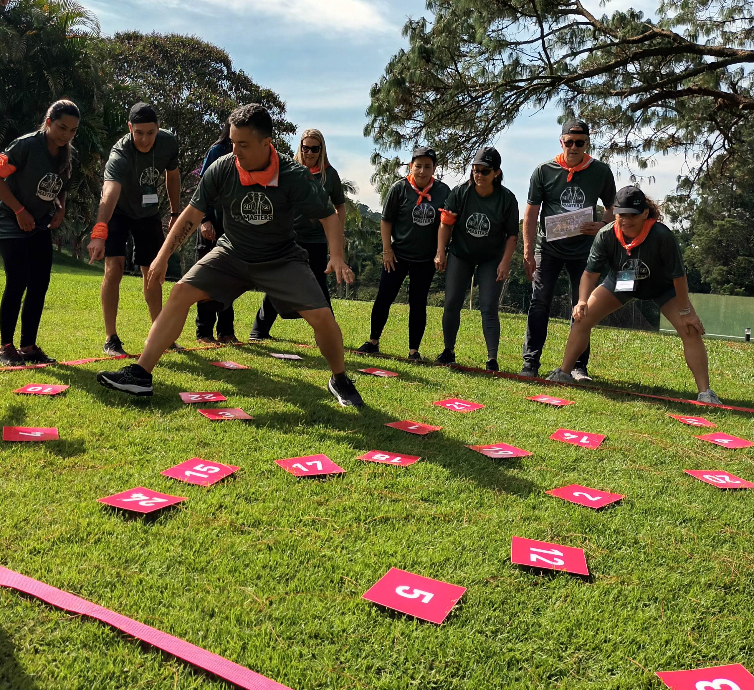 Uma jornada de desafios com dinâmicas inspiradas em corrida de aventura que fortalece a cooperação entre equipes e promove a integração de todos.